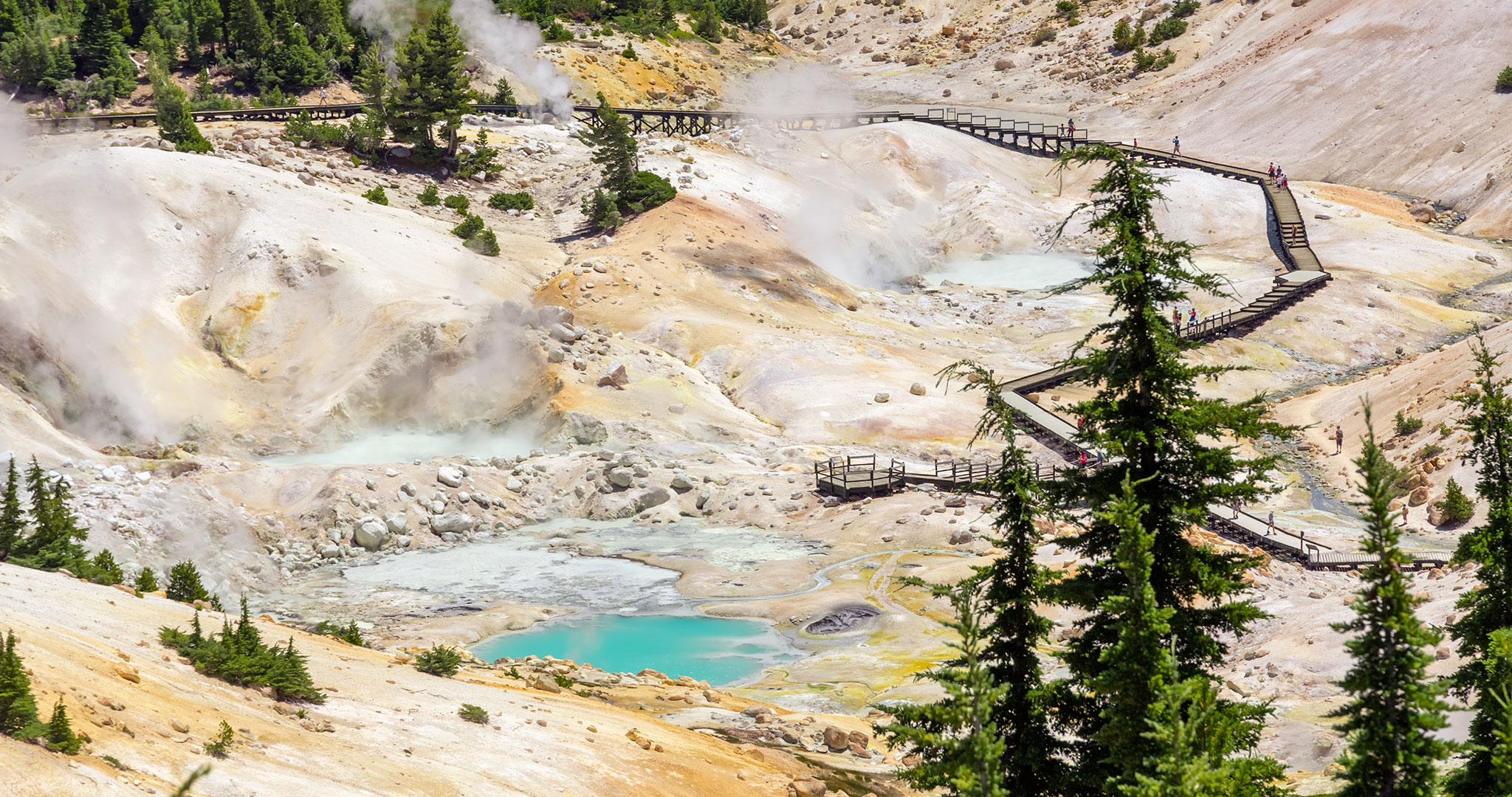 California is known for its diversity in landscapes, and a surprising example of the state’s volcanic past is found in Lassen Volcanic National Park. A pristine park in the state’s north, the steaming fumaroles and bright wildflowers are framed by jagged snow-topped mountain peaks. Amazingly, all four types of volcanoes found in the world (shield, plug dome, cinder cone, and composite) can be found in Lassen Volcanic National Park. It is also home to the largest plug dome volcano in the world and the southernmost volcano in the Cascade Range, Lassen Peak. Exploring this park will lead guests on a discovery of sparkling lakes, waterfalls, bubbling mudpots and misty hydrothermal areas. In some cases, the journey will be more exhilarating than what is at the end of the trail, and conversely many of Lassen’s most rewarding vistas are found at the end of unassuming paths. Bumpass Hell, Kings Creek Falls, Warner Valley, and Devil’s Kitchen are just a few of the must-visit features that satisfy all fitness levels and interests while avoiding overrun trails. Lassen remains the more sheltered cousin of national park giant, Yellowstone; but it rewards visitors with unparalleled beauty with a fraction of the crowds. While Lassen Volcanic National Park does experience some intense winter conditions, it is no less stunning than when meadows explode with life in the summers, making it the perfect place for experimenting with off-season travel. Destination America is thrilled to bring guests to this ever changing and active landscape, and with our in-depth knowledge of the best season and areas to visit, we can offer a wide range of itinerary styles for any comfort level and maximum enjoyment.
